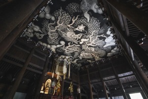 ・双龍図:法堂(はっとう)の天井一面に描かれた巨大な「双龍図」。畳108枚分の大きさがあり、迫力満点です。