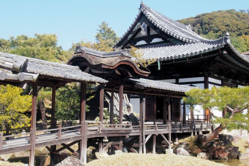東山を借景にした池泉回遊式庭園と、方丈前の白砂庭園「波心庭」が名勝指定。池・渡り廊・開山堂などが一体になった桃山時代を代表する庭園です。