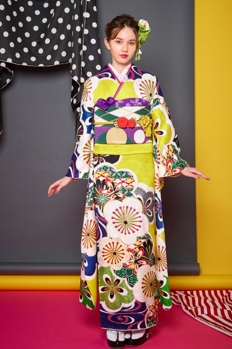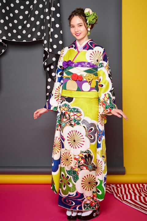 レトロモダンは、伝統的な和柄と現代的なデザインを融合させたスタイルです。昭和初期のクラシックなモチーフや色合いに、現代のセンスが取り入れられており、ノスタルジーと新しさが同居する魅力的なデザインです。 伝統的な和柄:例えば、梅、桜、鶴、菊などの花鳥風月をモチーフにした柄。 鮮やかな色合い:昔ながらの落ち着いた色合いに加えて、現代的な鮮やかな色が多用されることが多いです。 大胆なデザイン:大きめの柄配置やモダンな構図が特徴的で、視覚的にインパクトがあります。 異素材の組み合わせ:伝統的な絹だけでなく、レースやチュールなどの新しい素材を取り入れることもあります。 レトロモダンな振袖は、古き良き時代を感じさせる一方で、現代の洗練された美しさも併せ持っています。このため、成人式や卒業式などの特別な日にぴったりのスタイルです。個性的でありながらも和の心を感じられるため、オシャレ女子から人気があります。