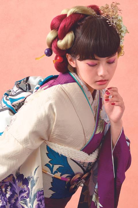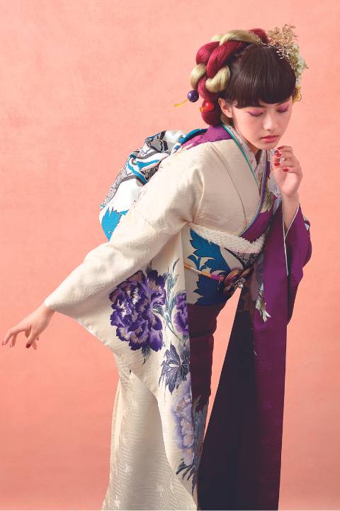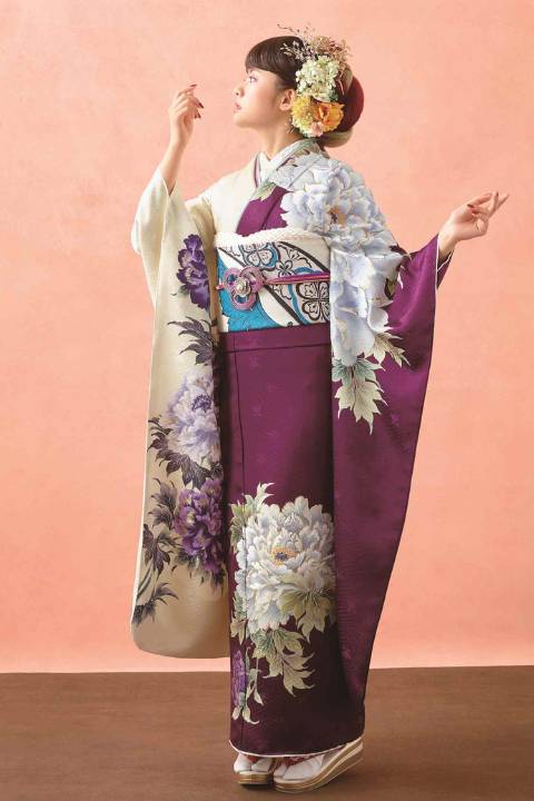くすみカラーとは、淡く抑えた色調のことを指します。この振袖には、ベージュ、グレー、くすみピンク、くすみブルーなど、落ち着いた色合いが使用され、上品で控えめな雰囲気を醸し出しています。 デザインは非常にシンプルで、余計な装飾を排し、素材そのものの美しさや質感を引き立てるミニマリズムが採用されています。柄も必要最低限にとどめ、控えめな花柄や幾何学模様などがポイントとして使われています。